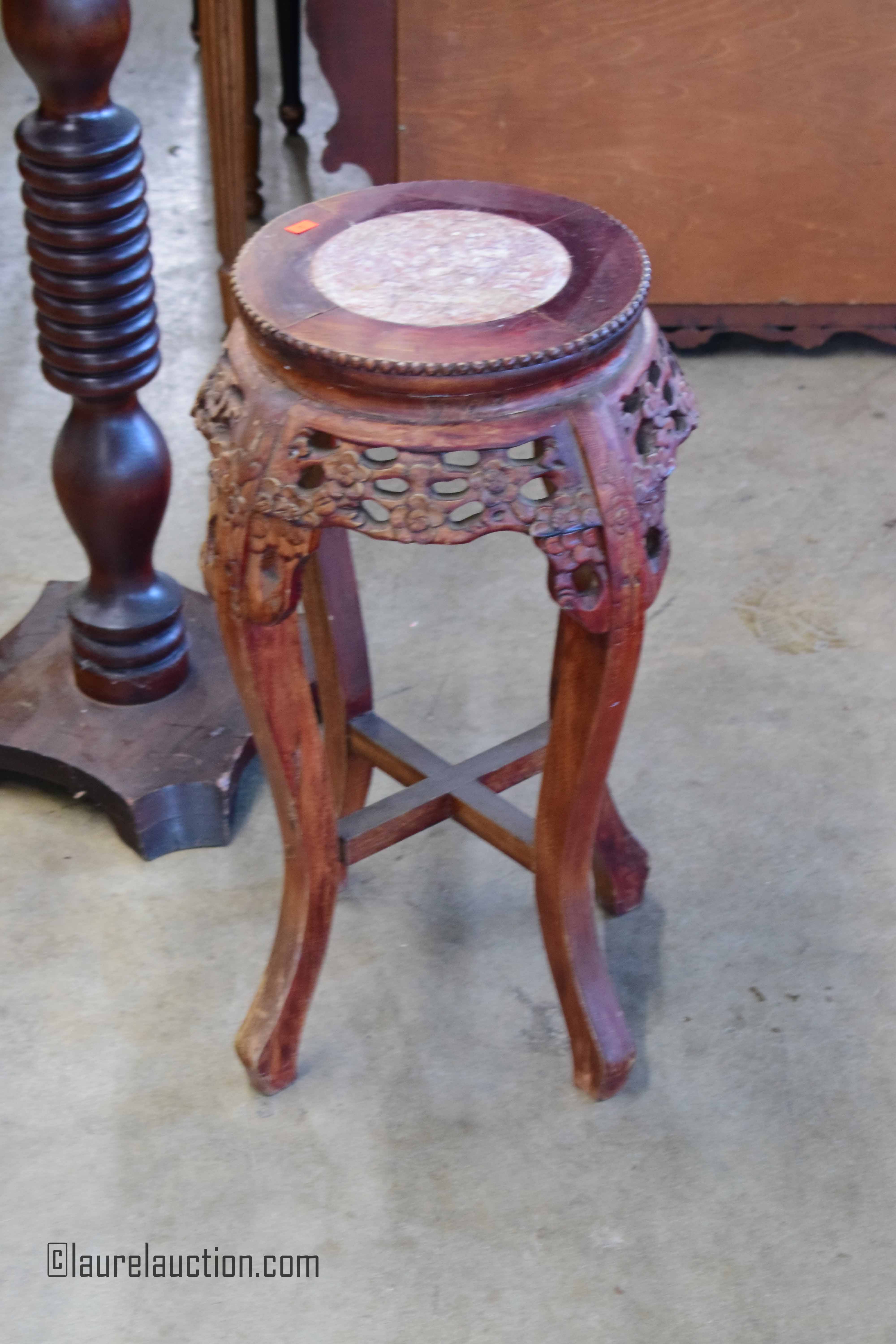 | Vintage Marble Top Carved Rosewood Plant Stand | |