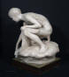 Carved Alabaster Statue On Bronze & Onyx Base 18 1/4" H |