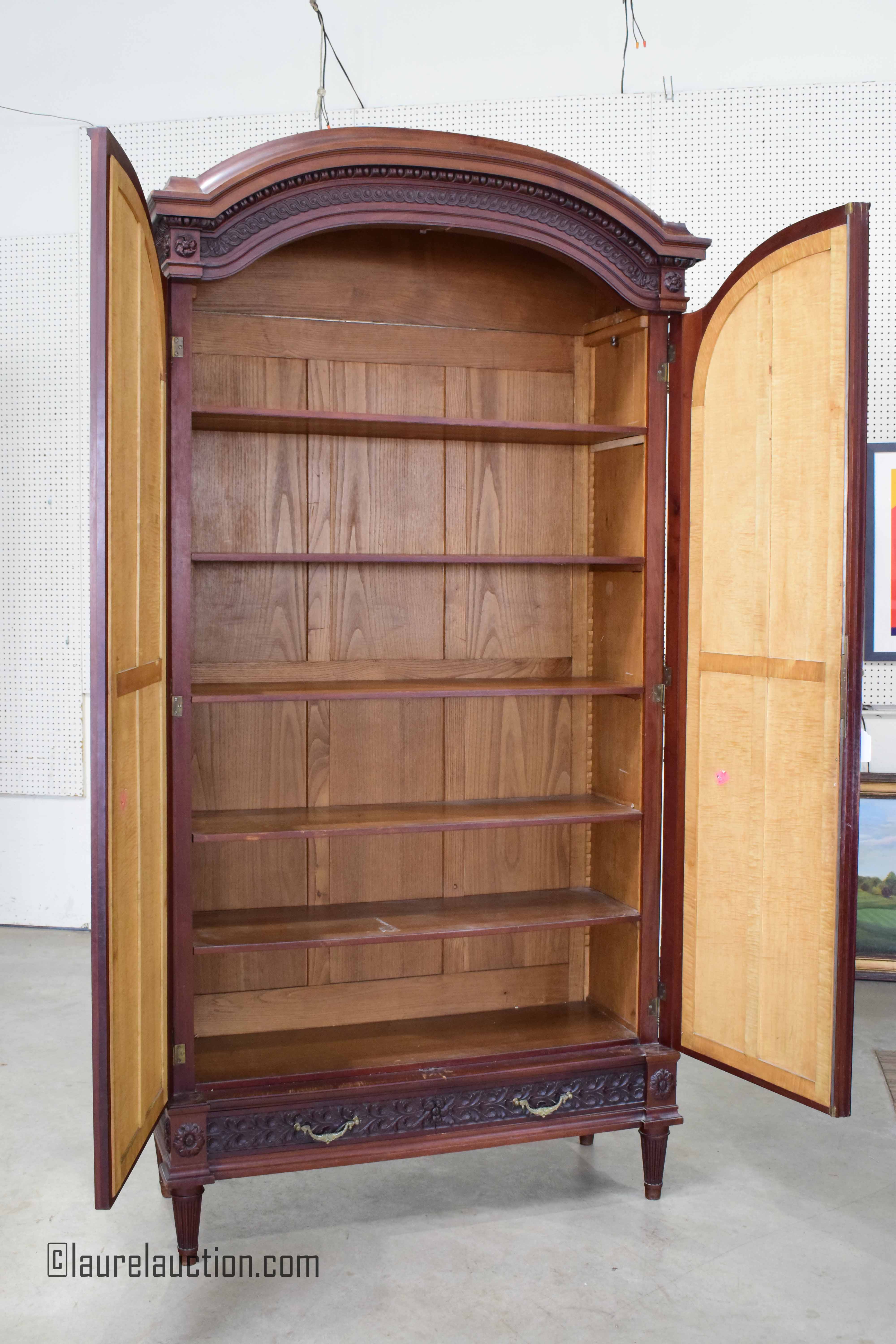 | Antique Carved Mahogany and Maple French Armoire
