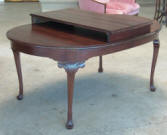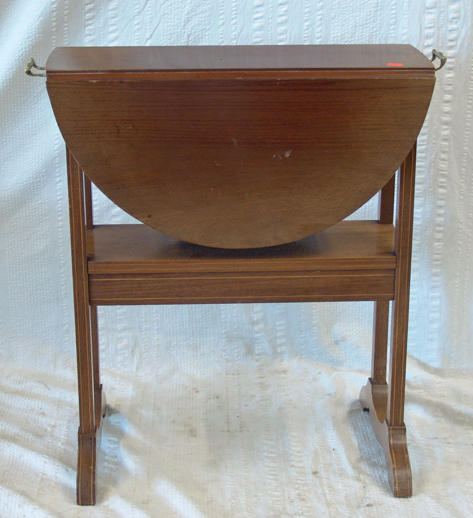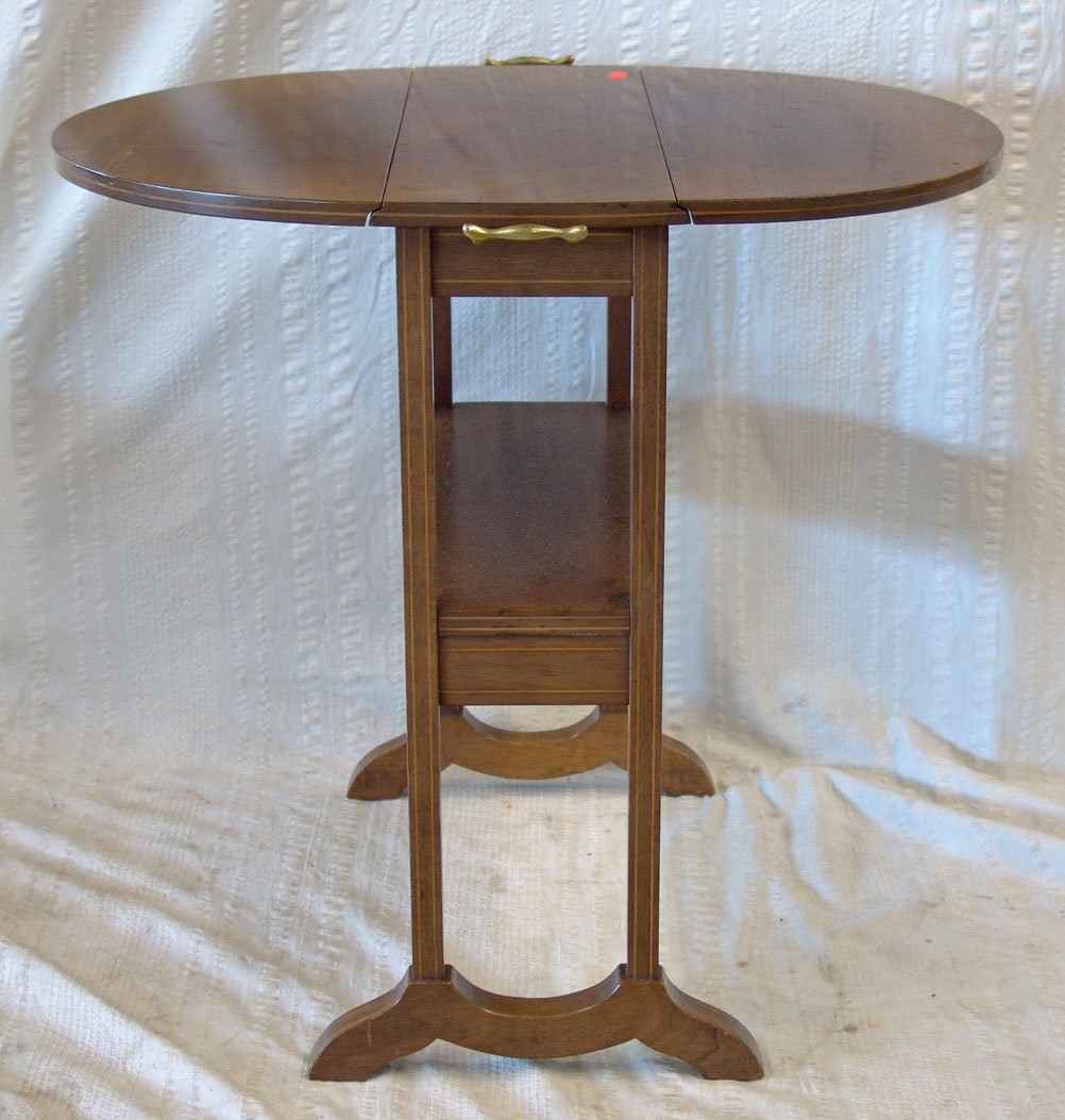 | Solid Mahogany Drop Leaf Tea Table w/ Line Inlay |