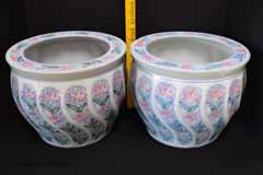| Pair of Paint Decorated Planters | |