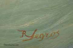 | Antique Oil on Canvas Egyptian Ship Signed: R. Legros | |