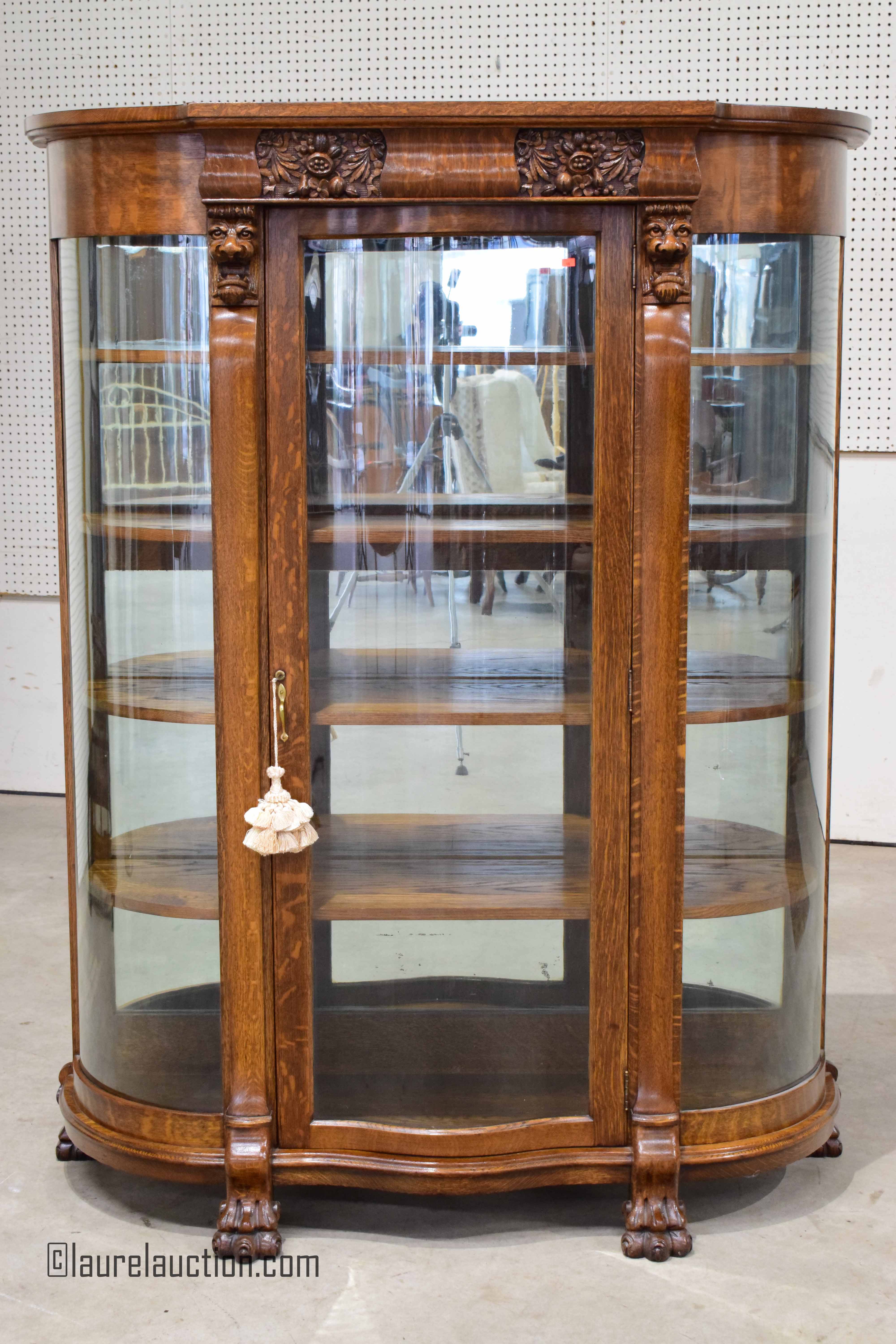 | Antique Carved Oak Bow Glass China Cabinet | |