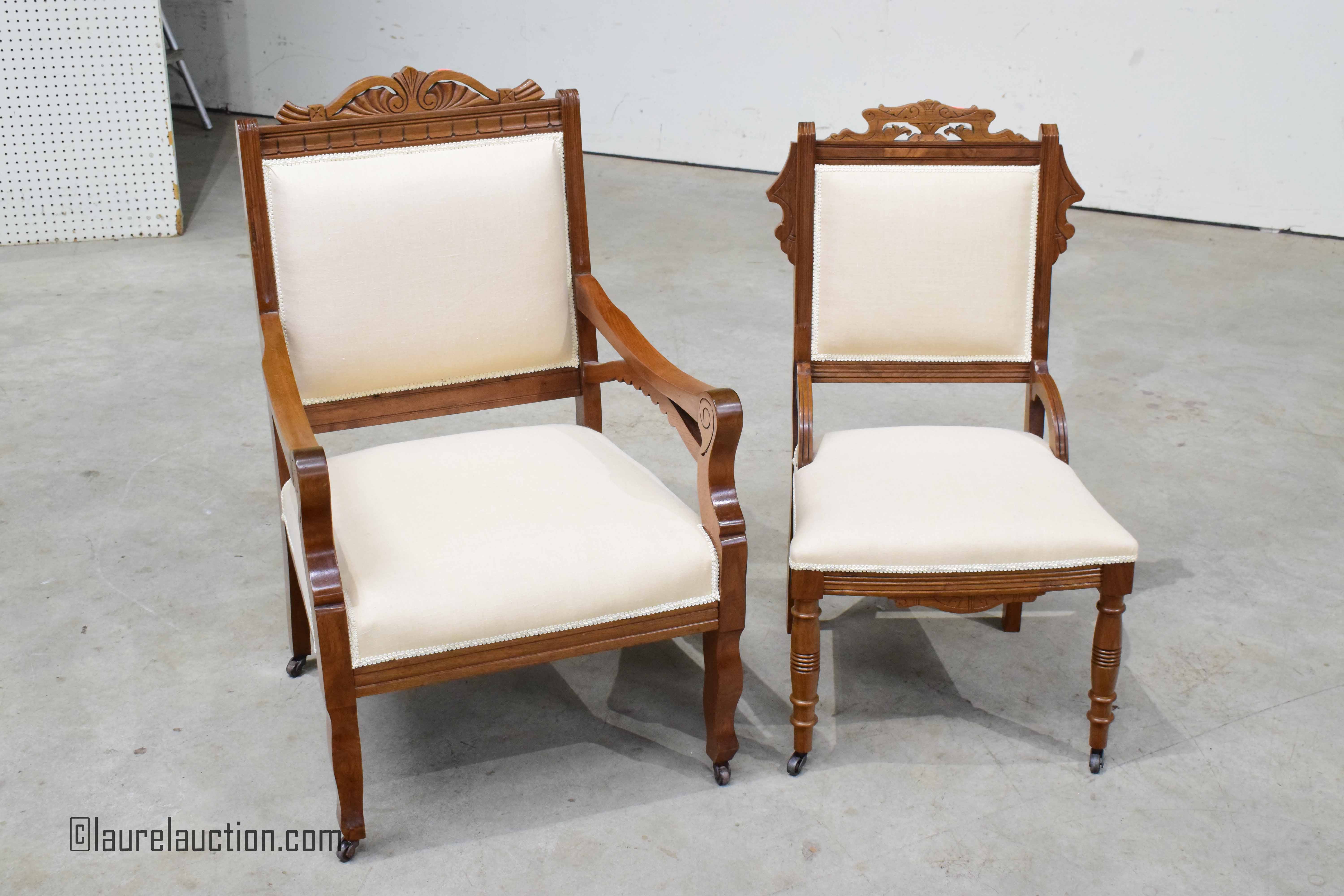 | Pair of Heavily Carved Mahogany Side Chairs | |