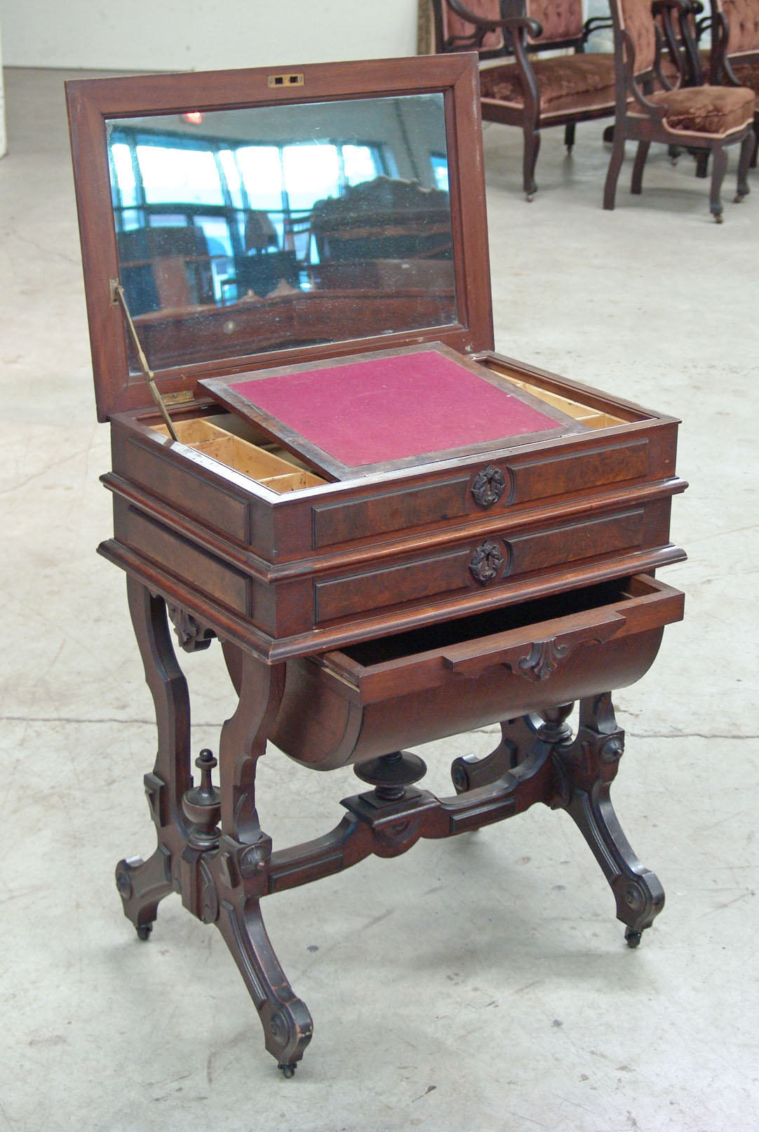 | Victorian Walnut Lift Top Work Table |