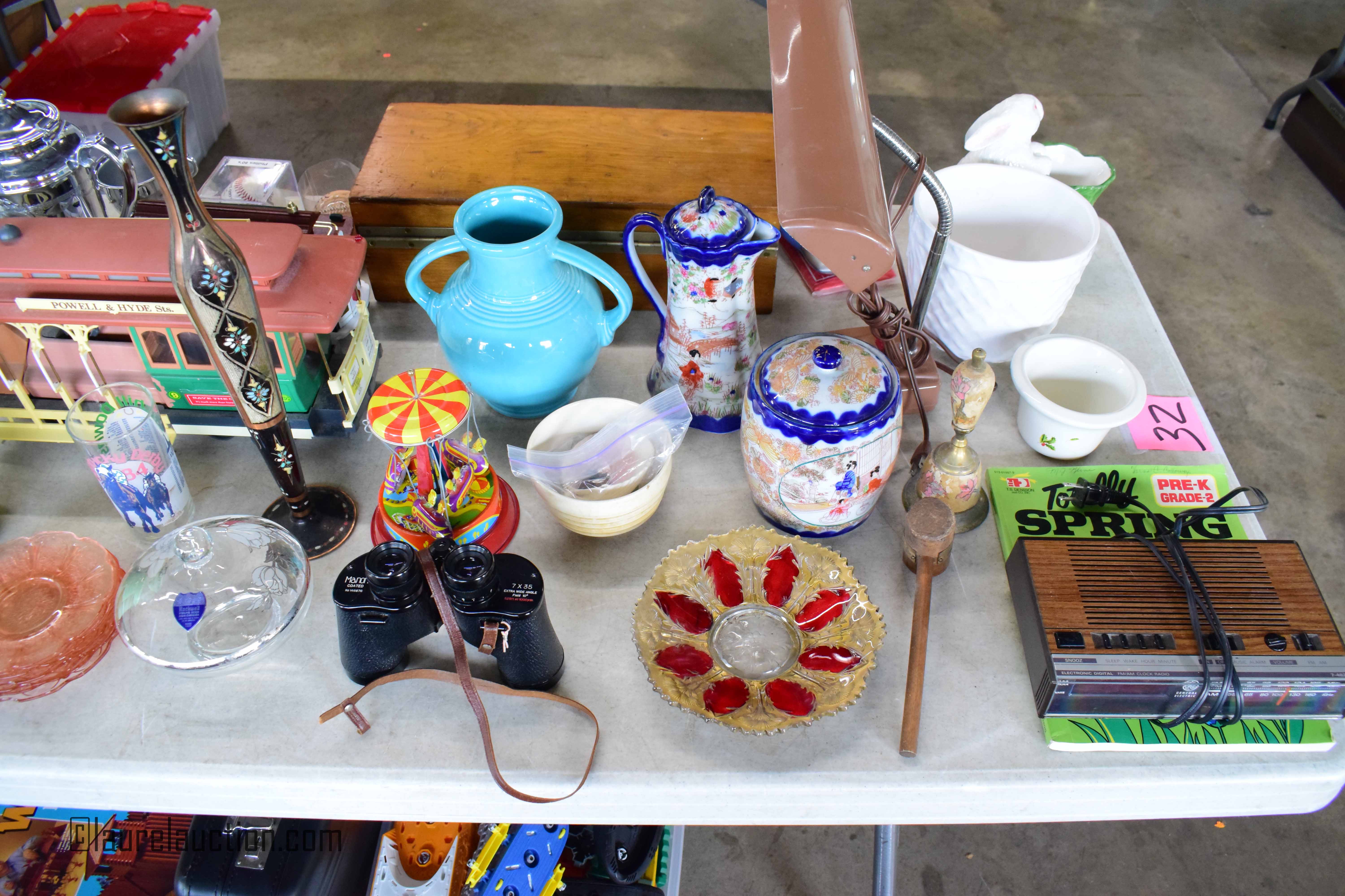 | Large Selection of Glassware, China, Pottery, Collectables, Jewelry, Electronics, Art, Etc. | |