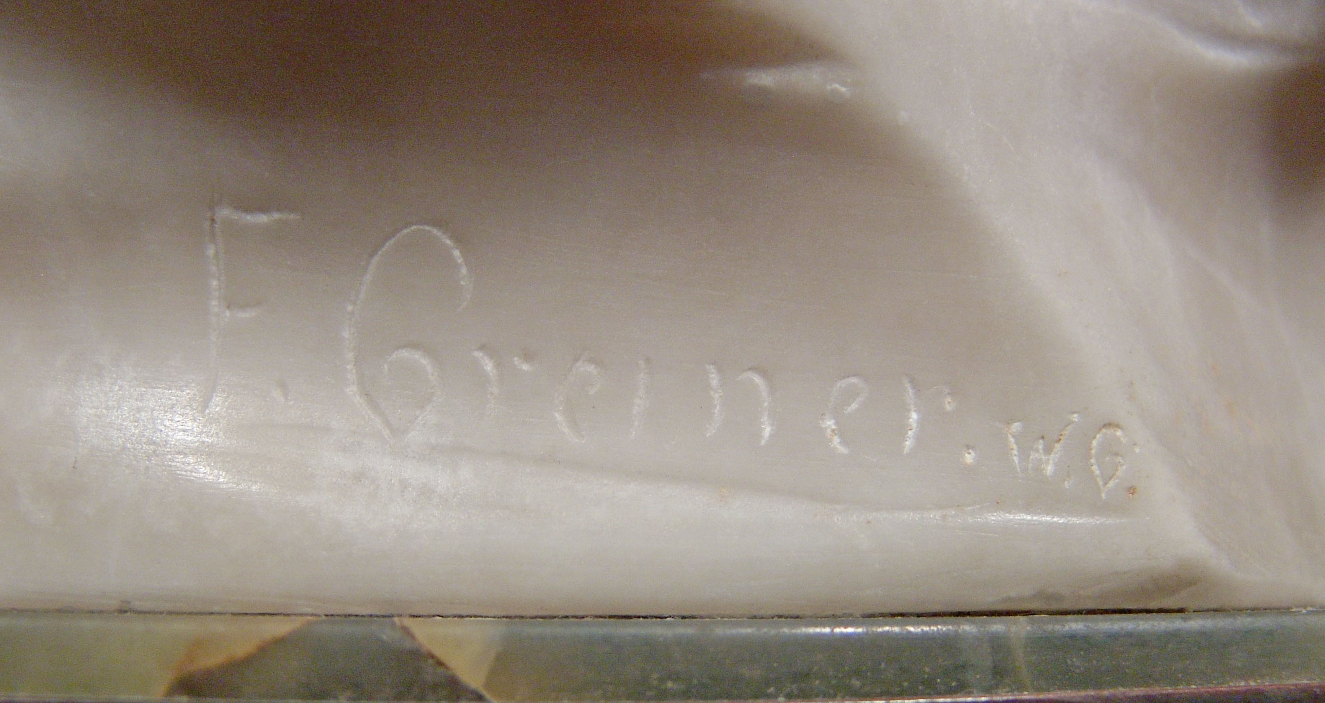 Carved Alabaster Statue On Bronze & Onyx Base 18 1/4" H |