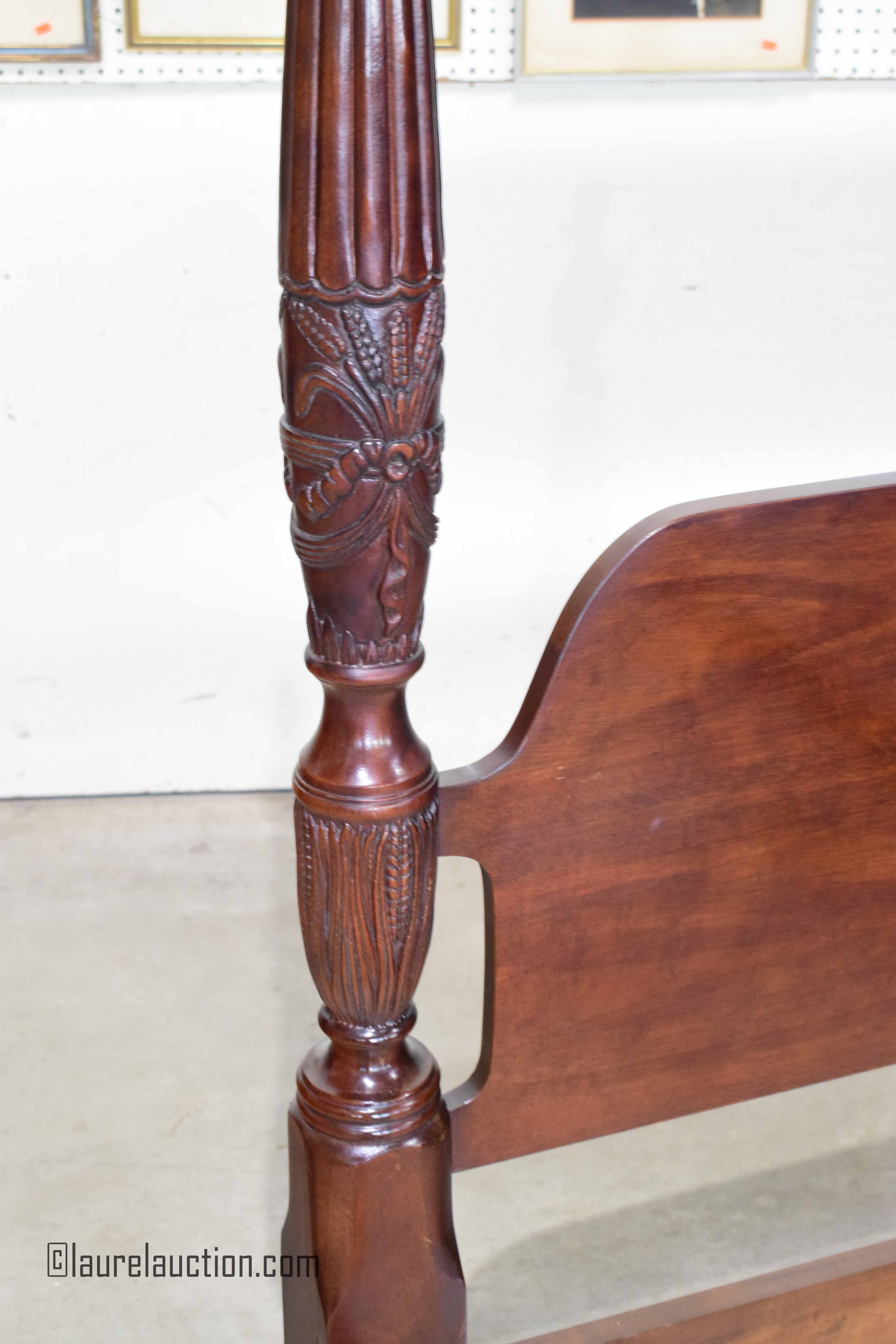 | Queen Size Walnut Rice Carved Poster Bed By: Henkel Harris |