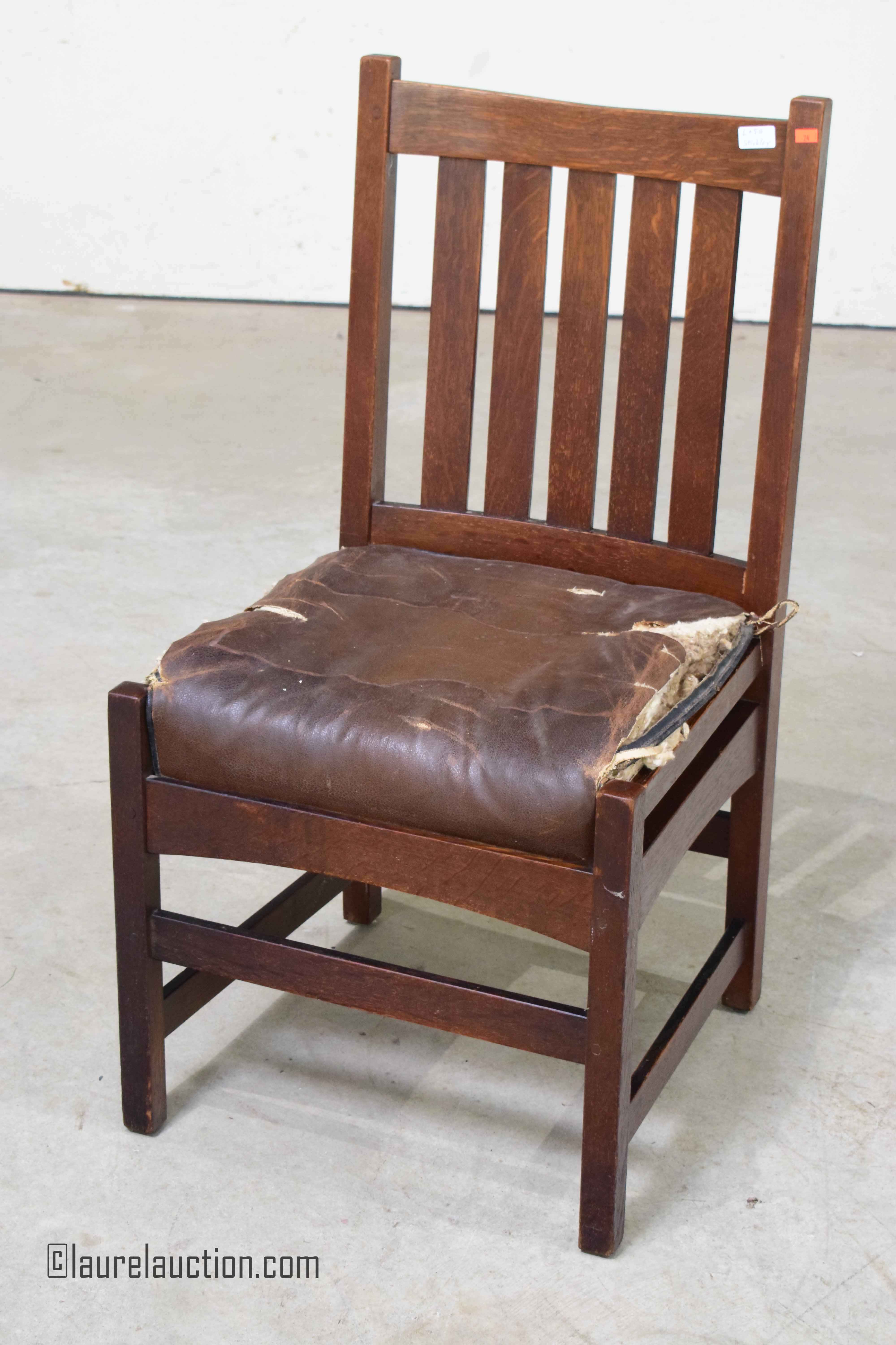 | Set of 6 Mission Oak Dining Chairs By: Stickley |