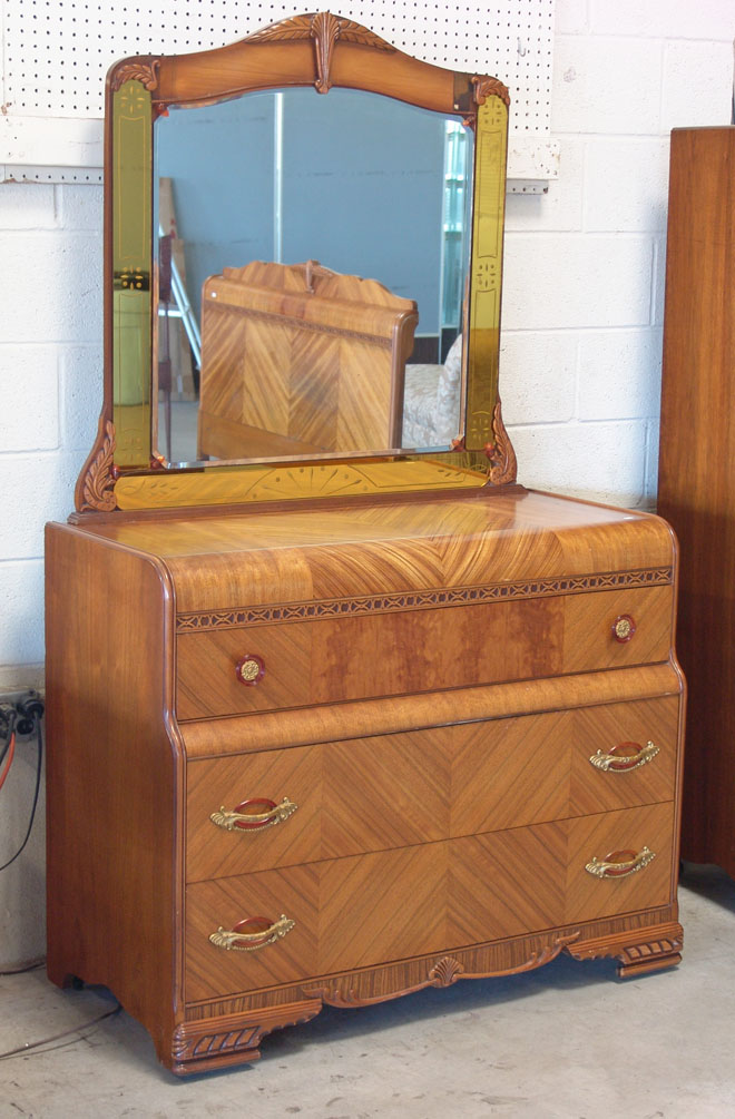 | 5 Piece Art Deco "Waterfall Bedroom Set" w/ Yellow Mirrors |