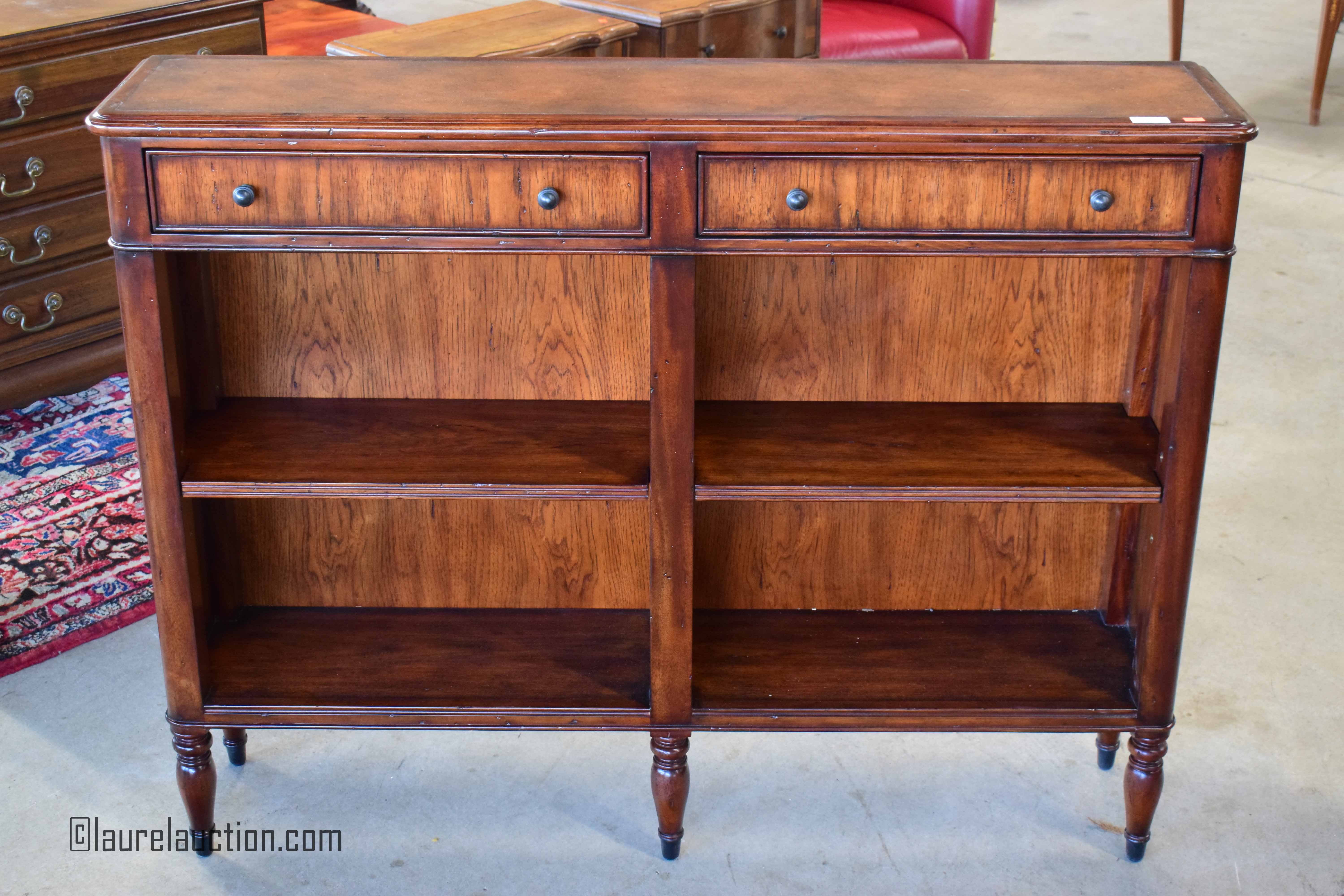| Leather Top Oak and Mahogany Book Shelf By: Theodore Alexander |
