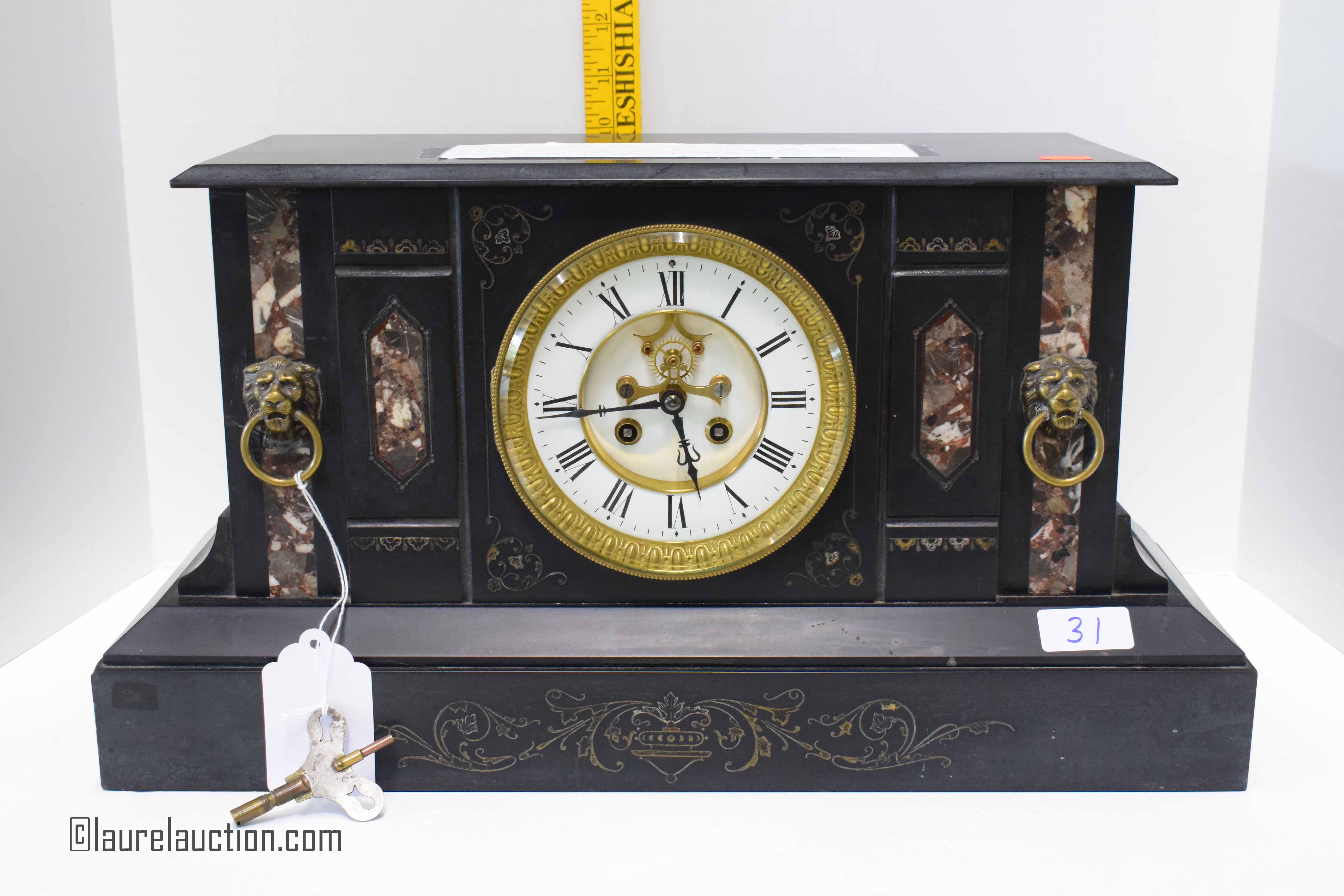 | Slate Cased Figural Clock By: Kroeber Clock Co. | |