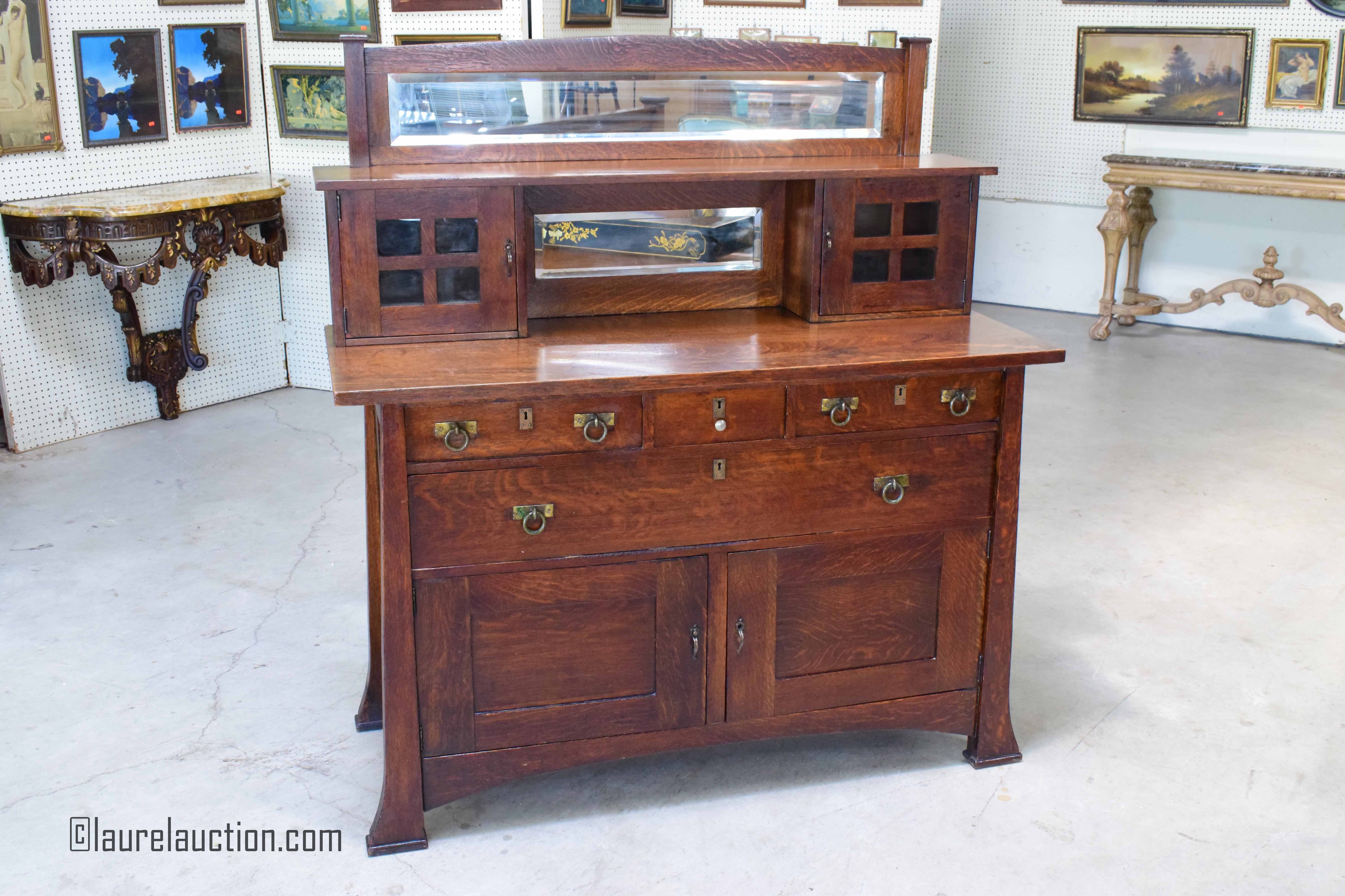 Antique Mission Tiger Oak Mirror Back Sideboard Likely Limbert or Lifetime; unmarked |