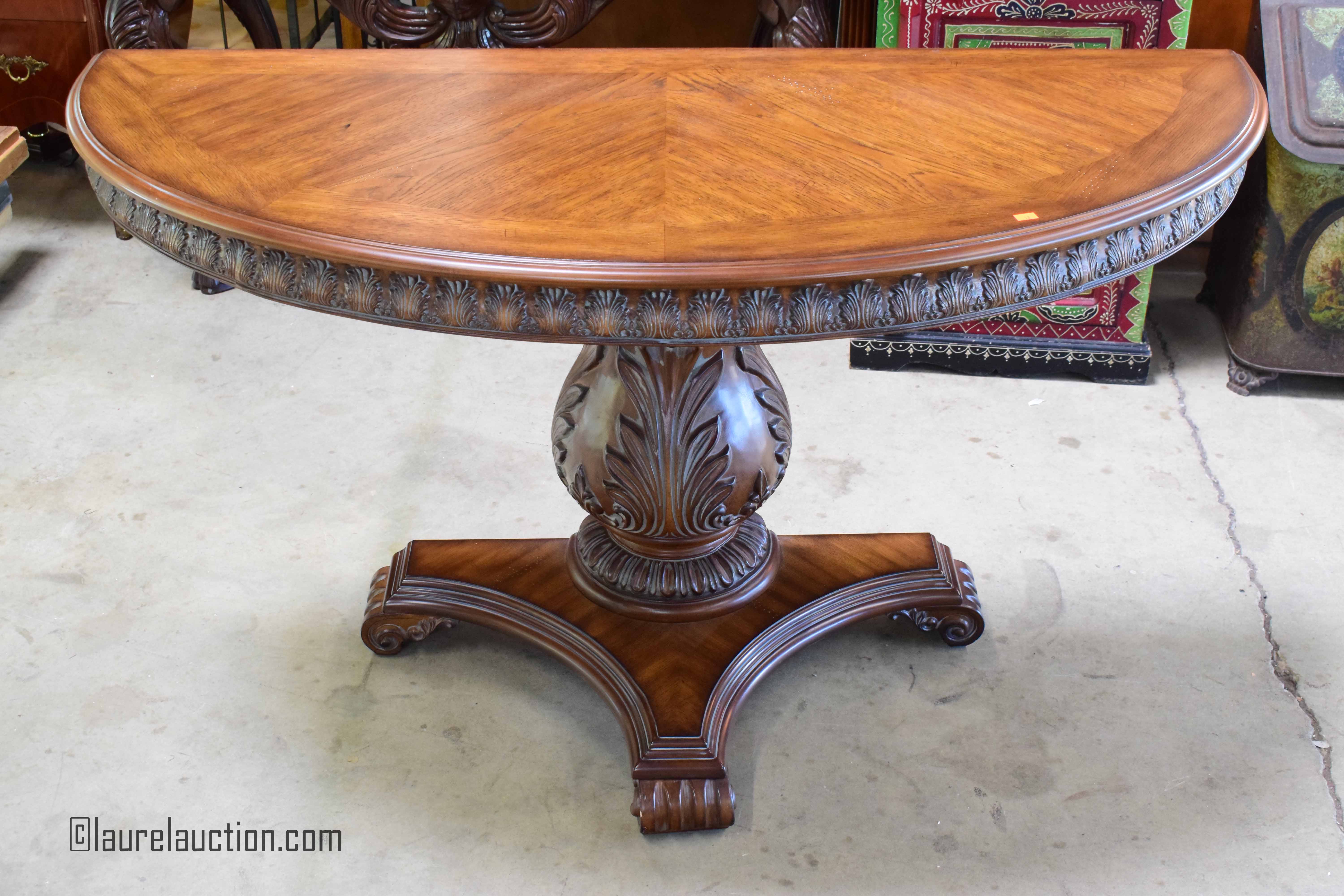 Carved Walnut Demilune Table |