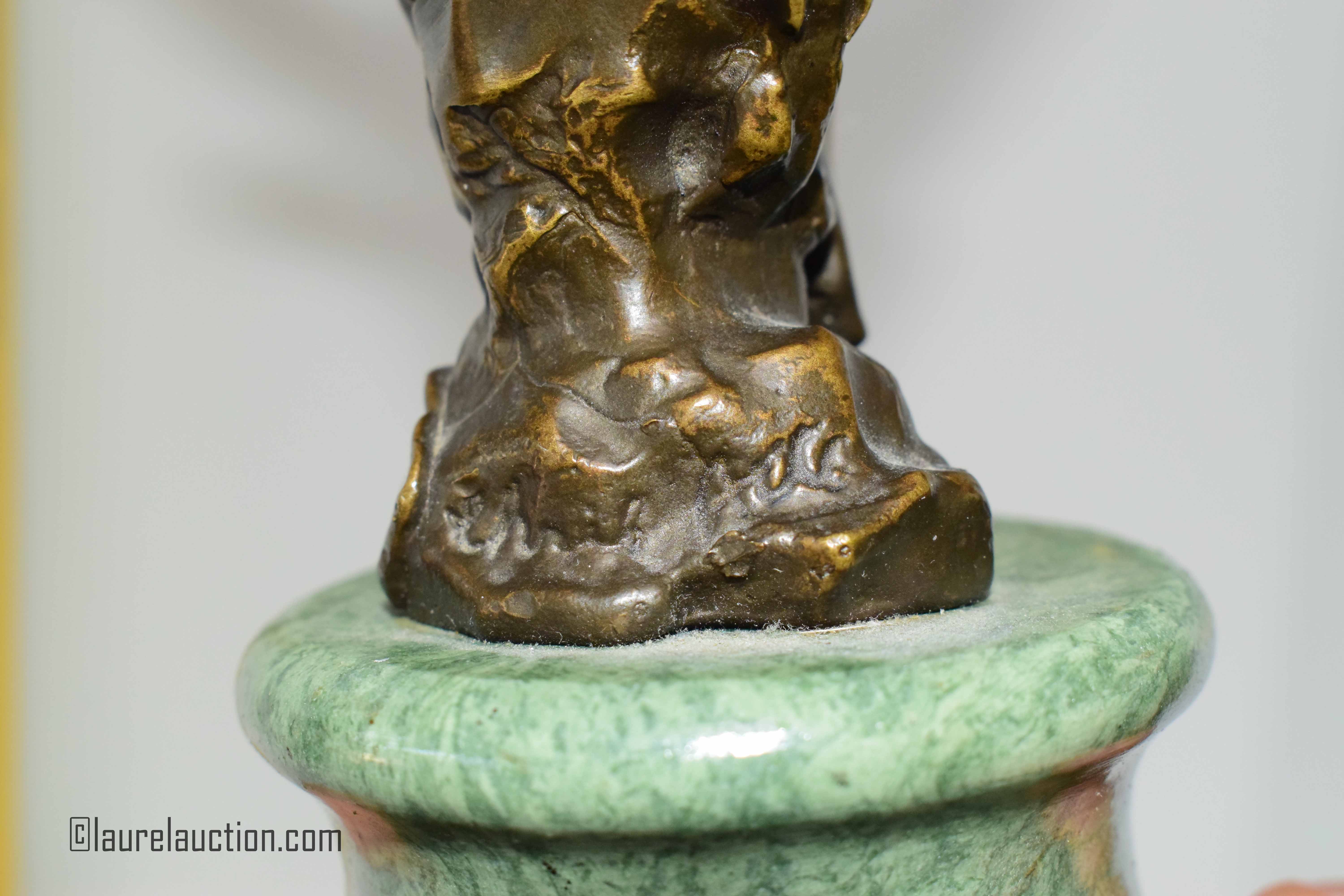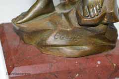 Patinated Bronze Nude Statue on Marble Signed |