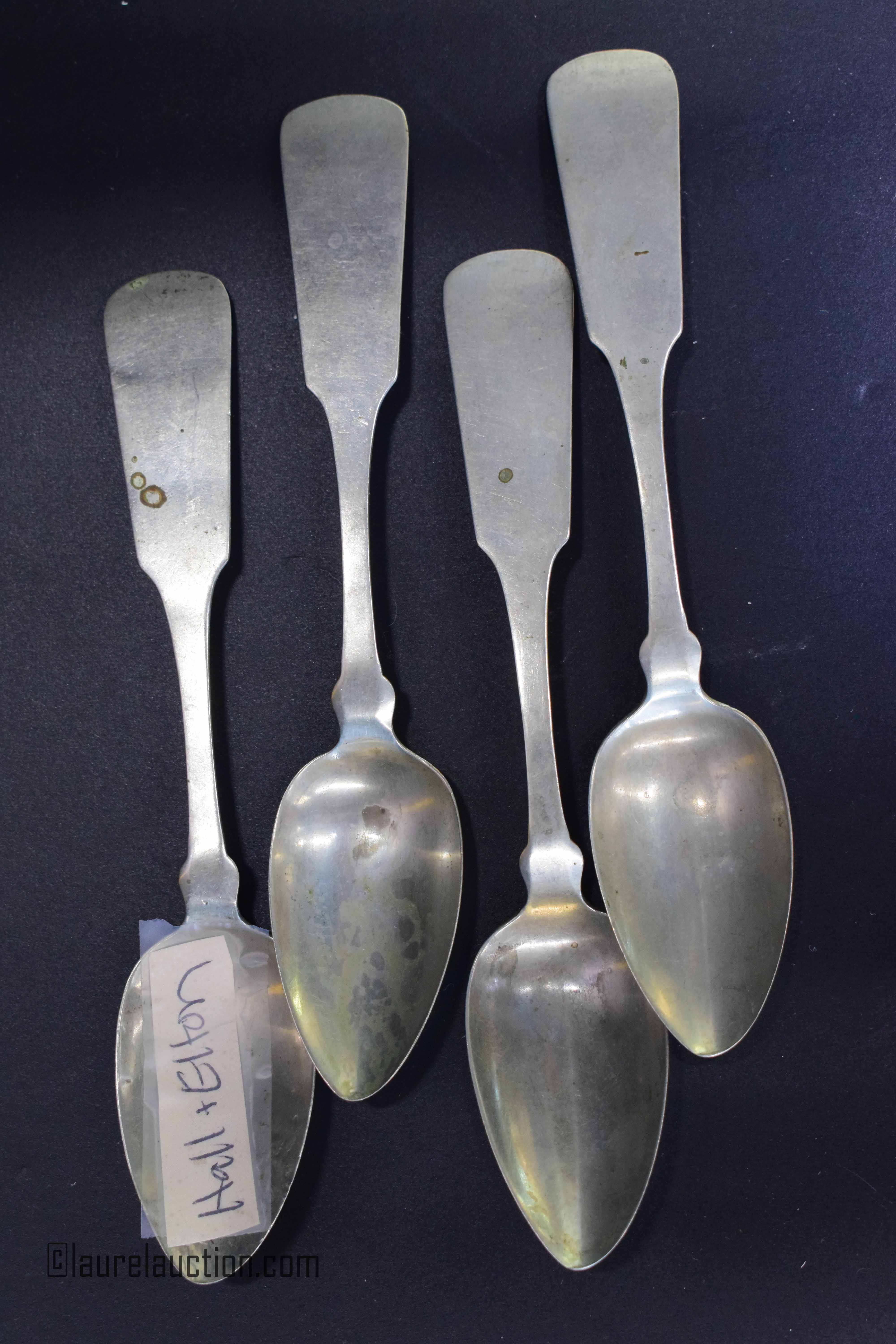 Set of 4 Early Coin Silver Spoons By: Hall & Elton - C.1860 |