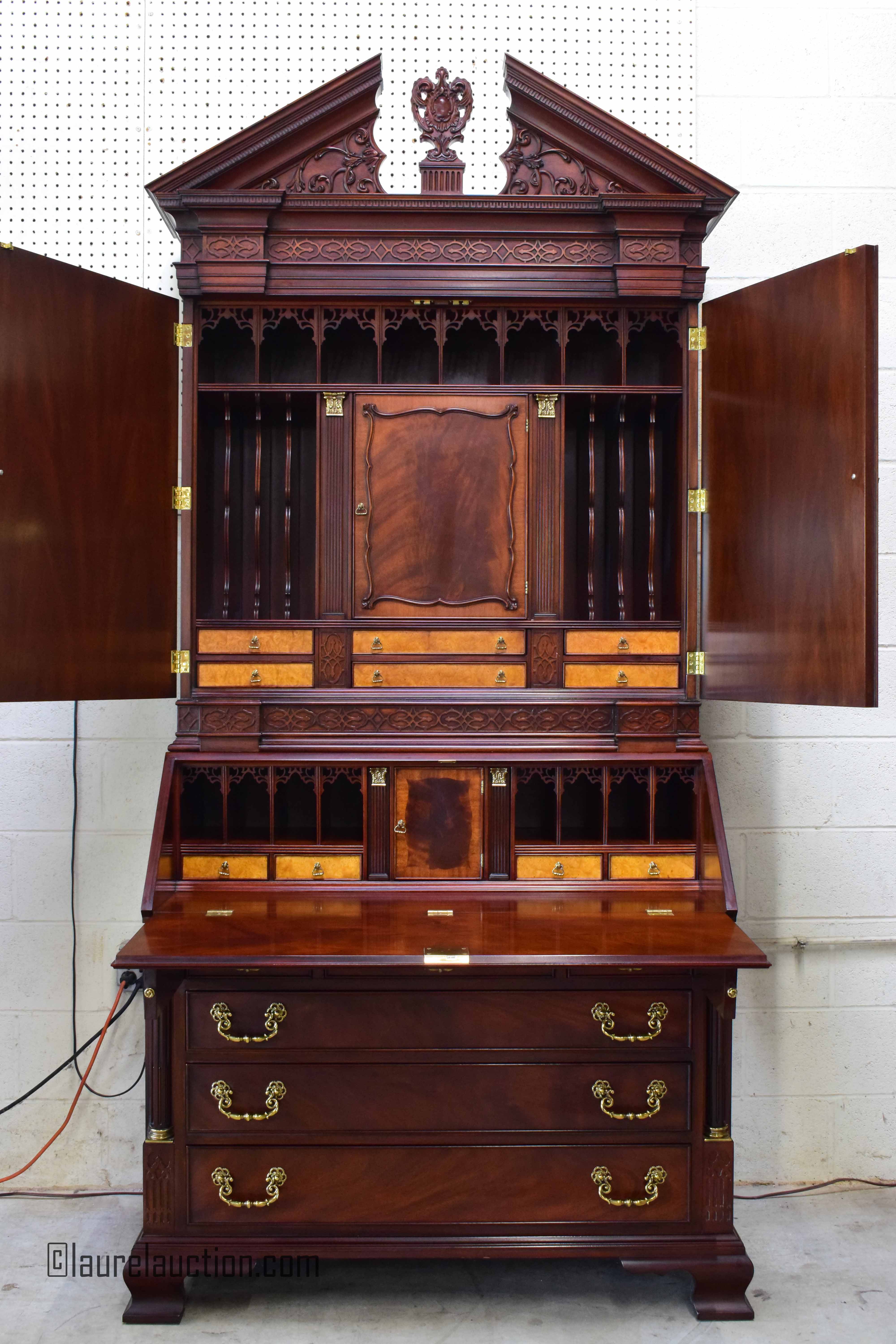 Carved Flame Mahogany 2 Part Document Desk
