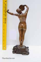 French Patinated Bronze "Dress Up" Nude Statue