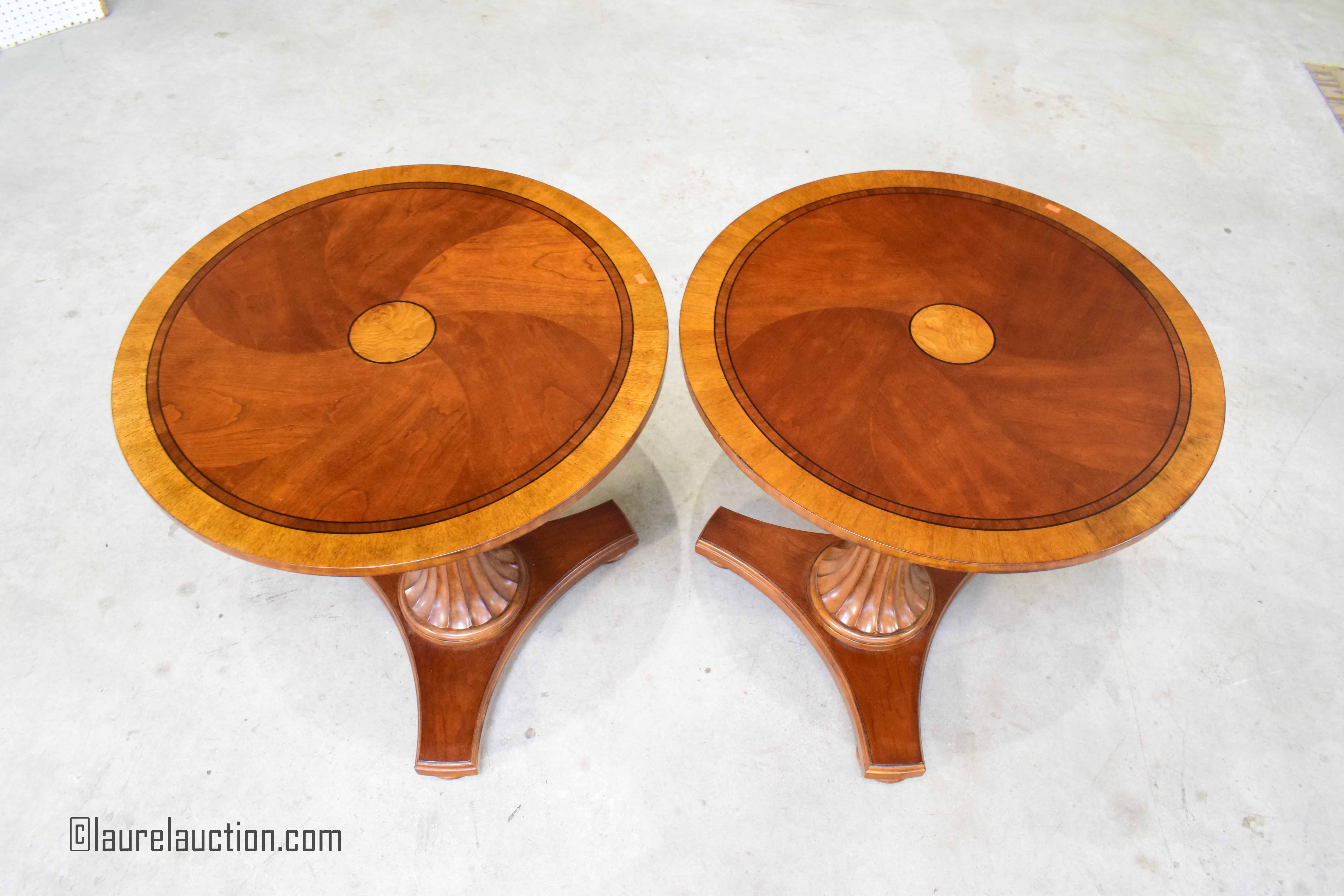 Pair of Inlaid Cherry Occasional Tables By: Ethan Allen |