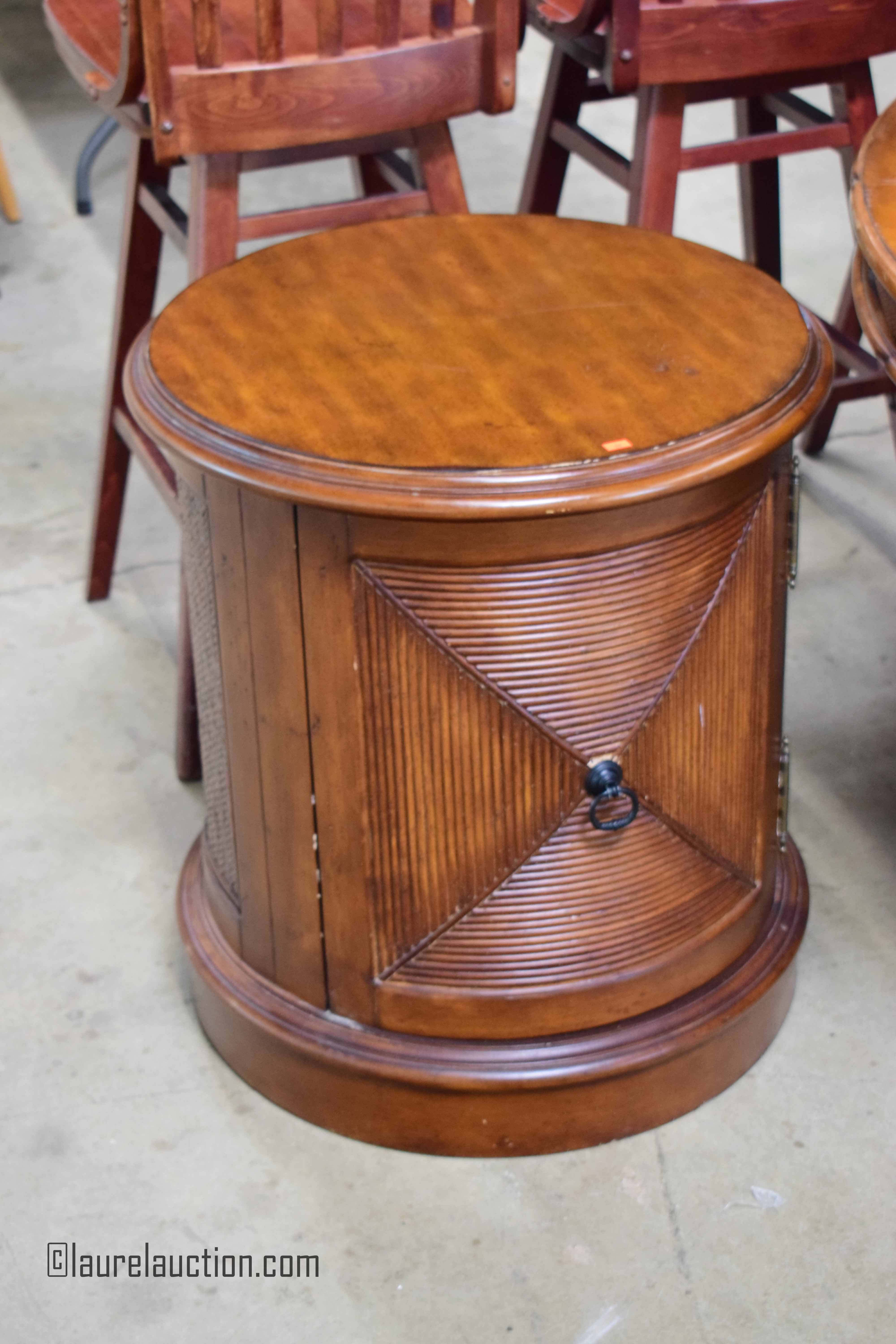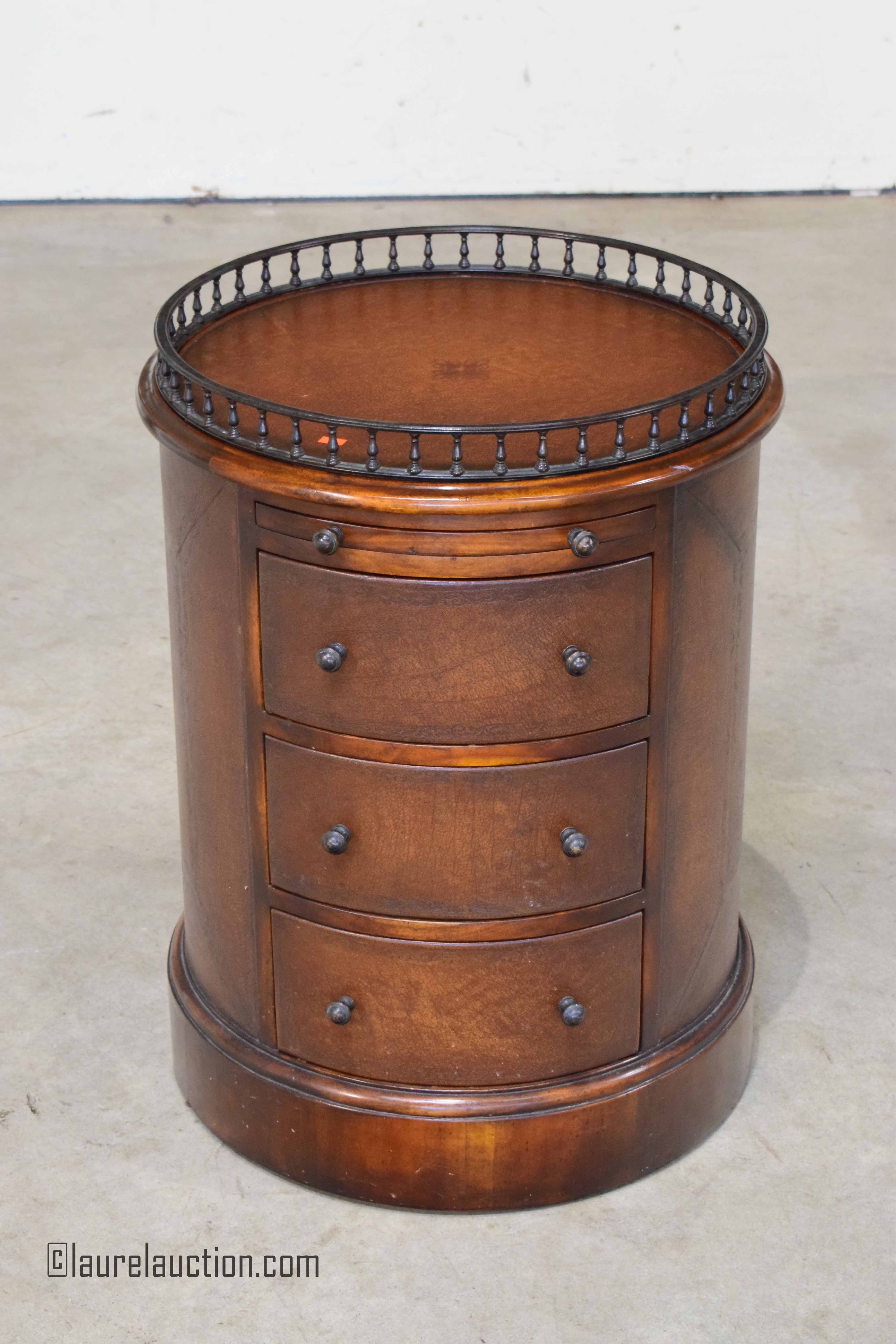 Leather Wrapped Cylindrical Lamp Table By: Theodore Alexander (unmarked) |
