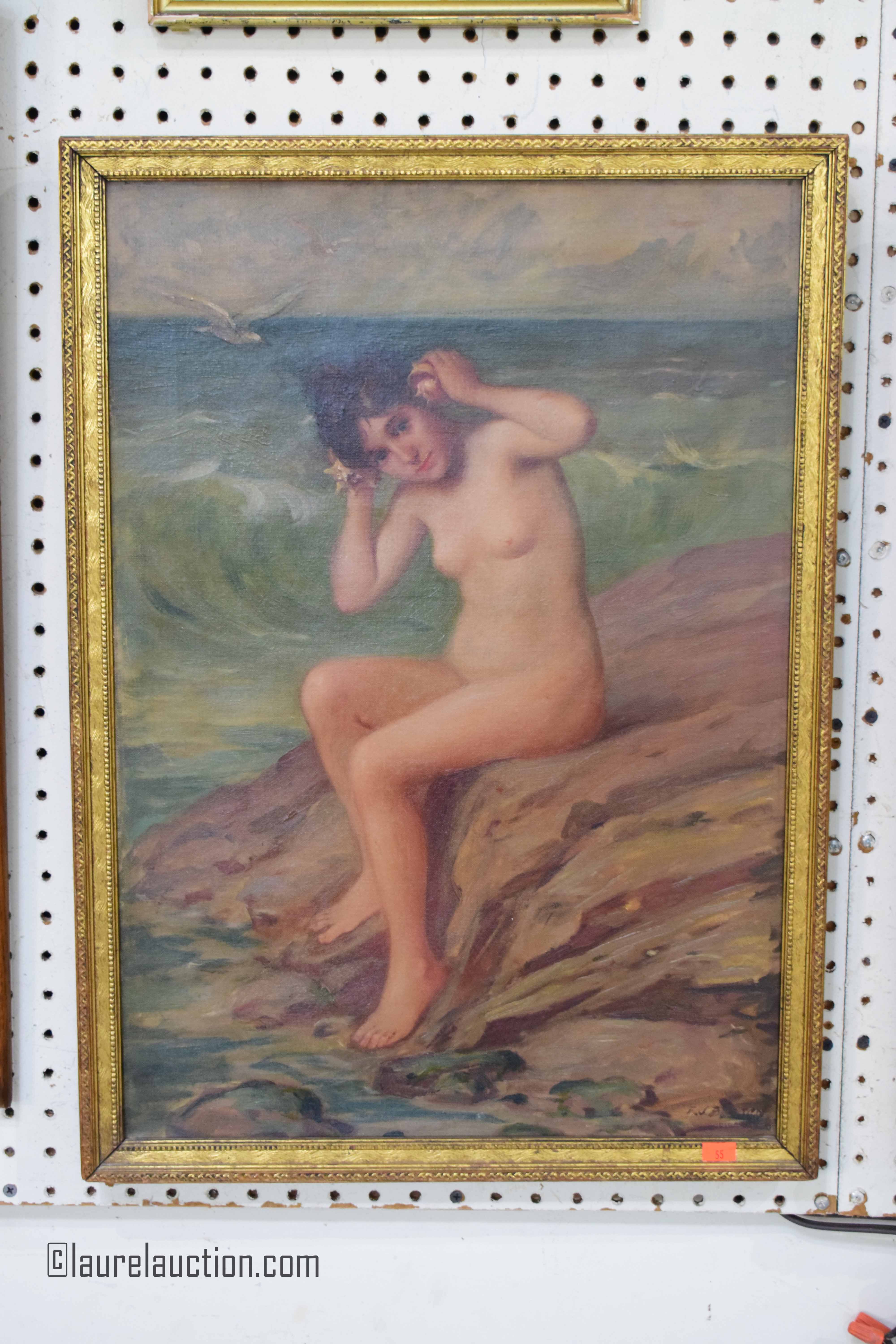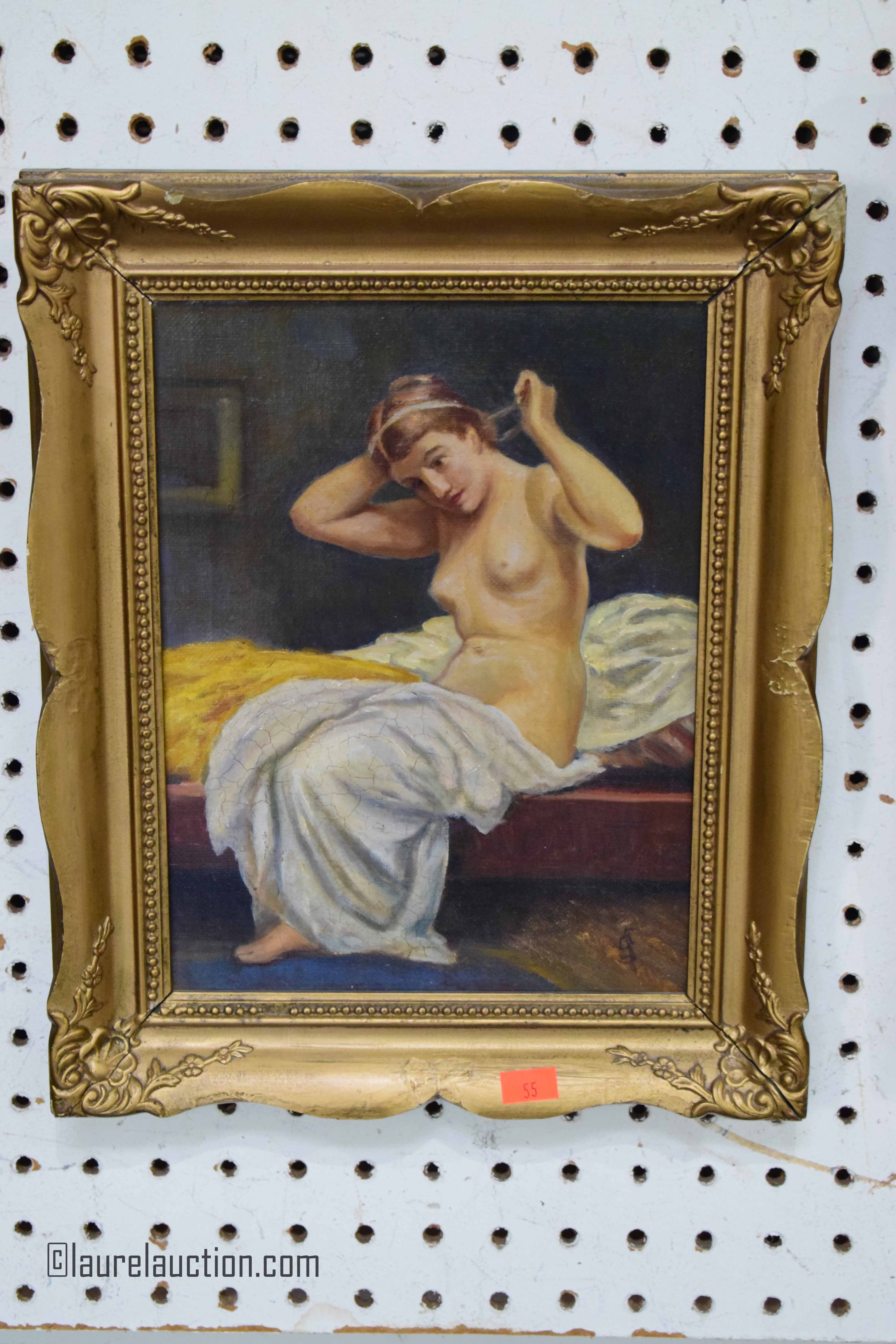 Oil on Canvas Nude Portrait in Gilt Frame Signed: F.J. Barton |