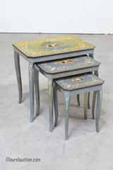 Sorrento Italian Inlaid Maple Nest of Table with Music Box |