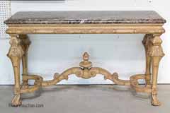 Vintage Carved and Gilt Painted Walnut Marble Top Wall Console |